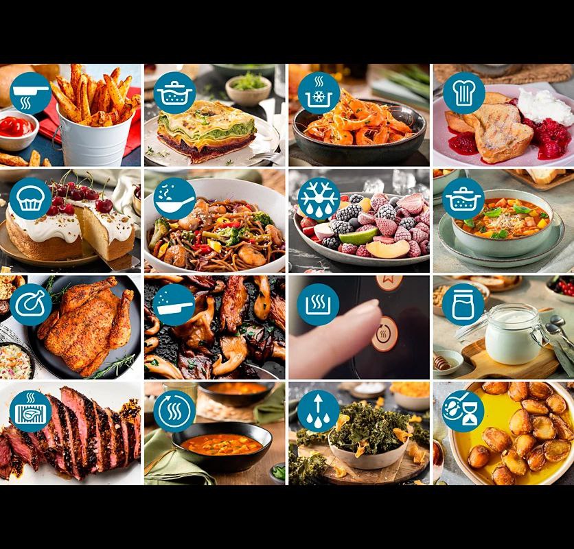 عملکرد : سرخ کردن – کباب کردن – گریل – پخت – پخت One-Pot – سرخ کردن مواد غذایی منجمد – گرم کردن مجدد – یخ زدایی کردن – گرم نگهدارنده – خشک کردن مواد غذایی – تست کردن و …