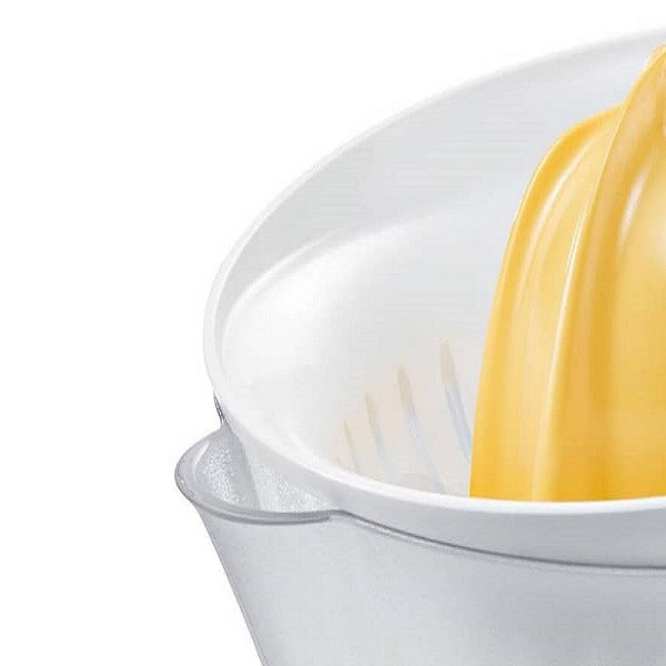 آب مرکبات گیری بوش مدل MCP3500 از محصولات کوچک و کاربردی و همچنین پرفروش موجود در بازار است که کیفیت بالایی دارد. این محصول امکان آبگیری تعداد زیادی پرتقال یا لیمو یا سایر مرکبات را دارد، چرا که ظرفیت حجم آن کمی کمتر از 1 لیتر است. آب مرکبات گیری بوش مدل MCP3500 بدنهی پلاستیکی و با کیفیتی دارد که هم زیبا طراحی شده و ترکیب رنگهای روشن سفید و زرد جذابیتی خاصی به آن بخشیده است. امکان تهیهی آبمیوه با میزان پالپ مختلف توسط صافیهای این دستگاه وجود دارد. نحوهی قرارگیری مخزن و پایه در این دستگاه طوری طراحی شده است تا به درستی و به راحتی بتوان از آنها استفاده کرد. دسته ظرف این محصول هم طراحی ارگونومیکی داشته و کار با آن را راحتتر میکند. در لبه پایینی این دستگاه شیاری قرار دارد تا کابل برق در آن جای گیرد. یک درپوش برای مواقعی که از دستگاه استفاده نمیشود در بستهبندی دستگاه وجود دارد تا روی مخروط و صافی قرار گیرد.