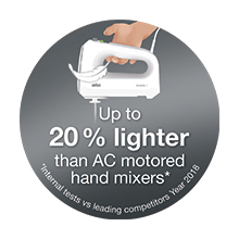 با همزن دستی براون مدل HM1010 ، یک طراحی منحصر به فرد برای هم زدن سریعتر است یا از لوازم جانبی خمیرزن برای خمیرها و نان های ضخیم استفاده کنید. از میان 5 سرعت مختلف با میکسری که برای راحتی و انعطاف طراحی شده است، انتخاب کنید تا از فرآیند پخت لذت ببرید. این همزن بدنه ای سبک دارد که باعث می شود در دست گرفتن بسیار آسان تر و راحت تر باشد